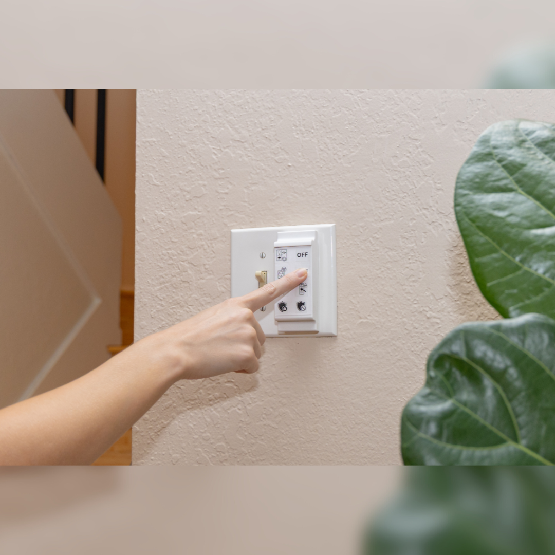 Mounts magnetically over your existing wall switch — no glue, no screws, and no wiring. Move or reposition any time without leaving marks.